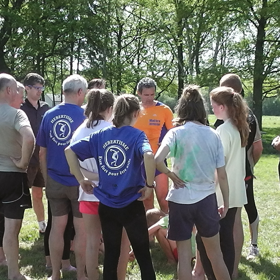 En fonction de l'espace dont on dispose, on réalise un parcours de préférence en plein air pendant lequel on exécute les exercices suivants :